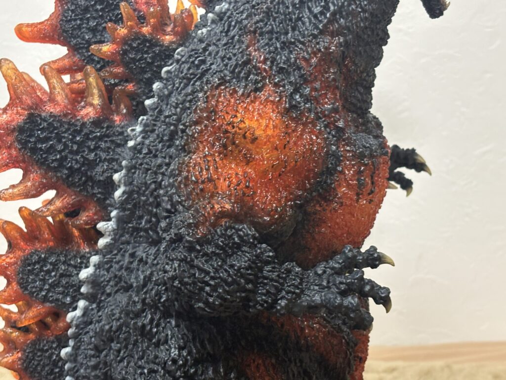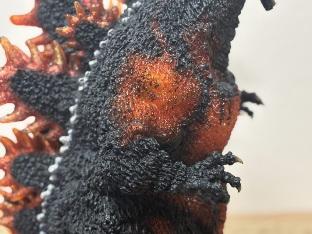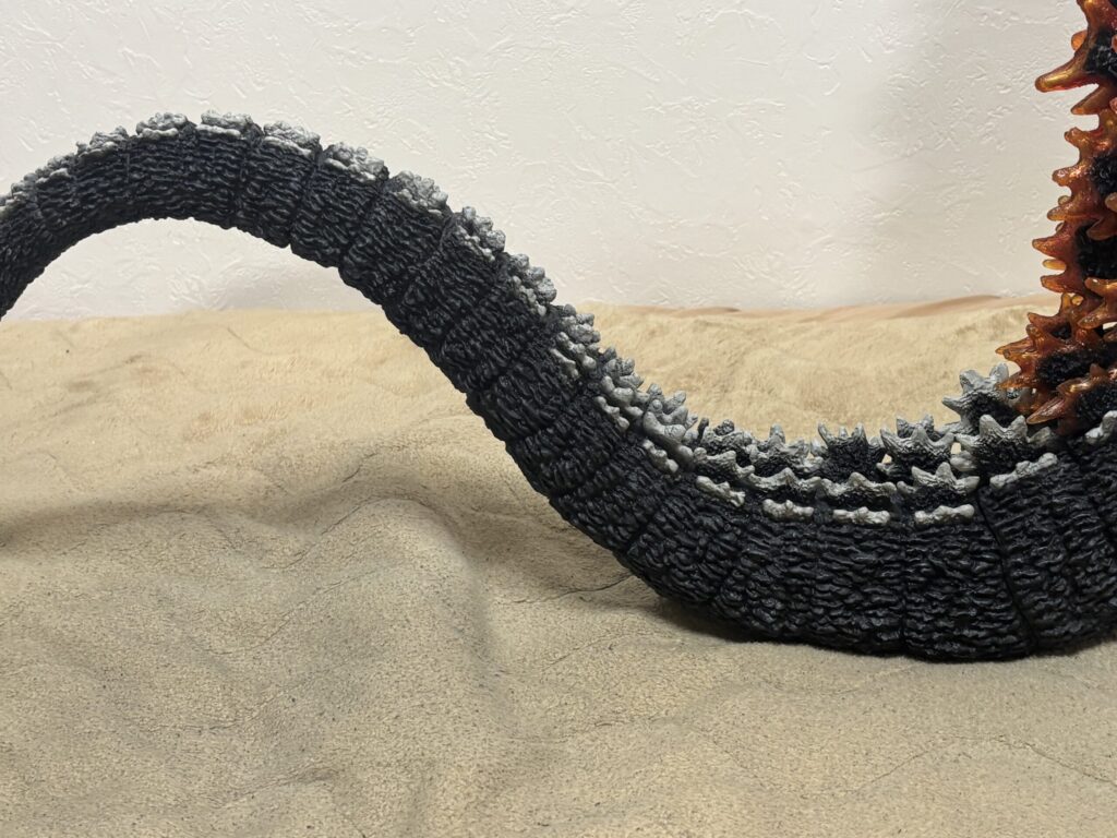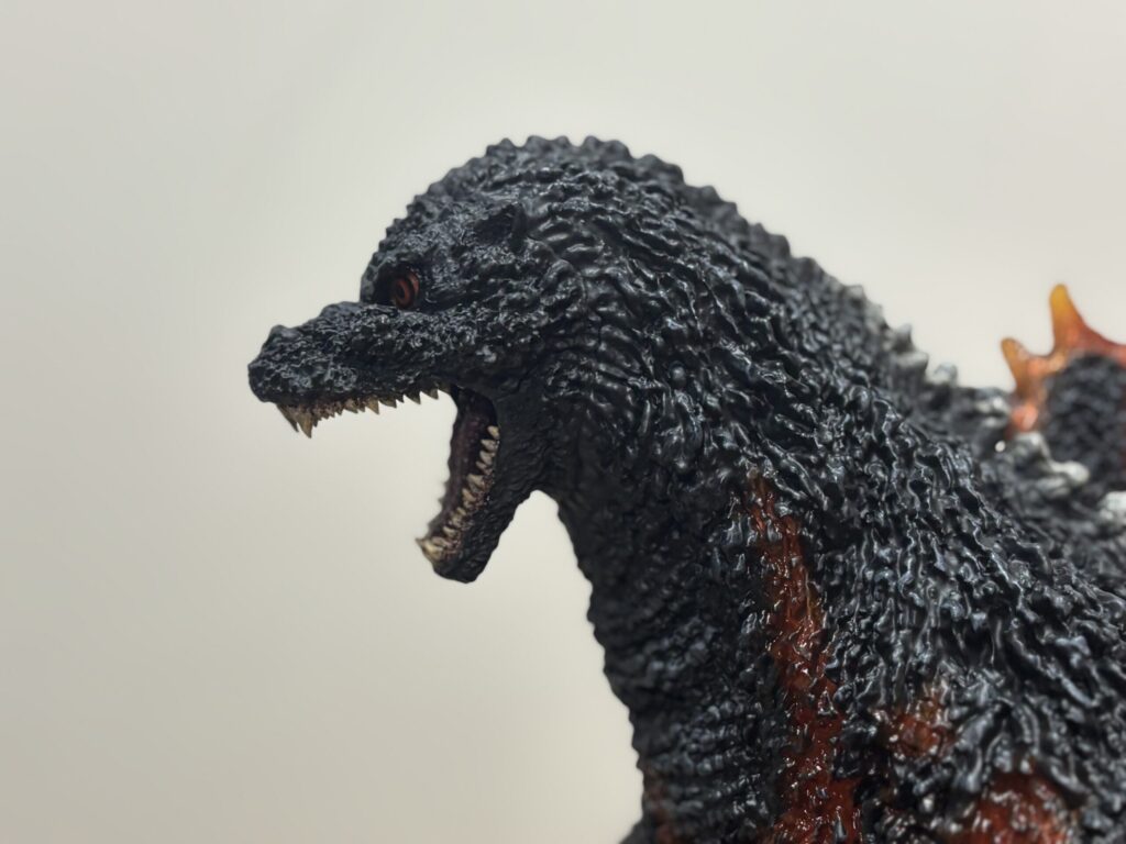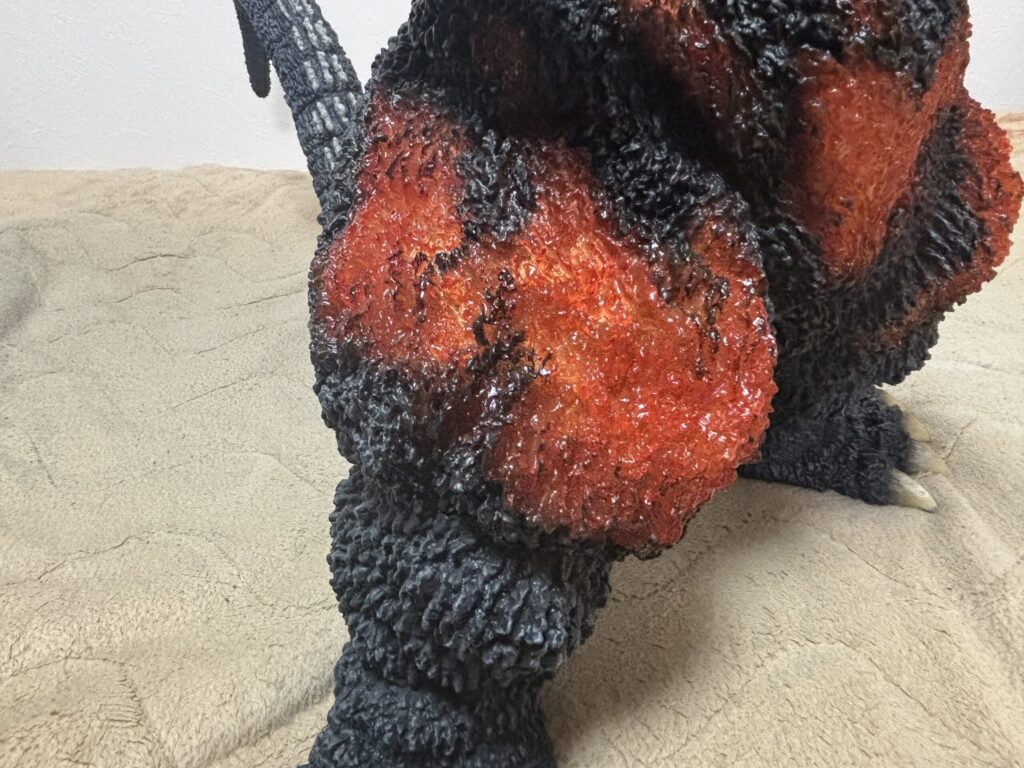 表皮のモールドが深く、本当の生き物みたいですごい質感です。購入当時同じような感想だった東宝30cmシリーズと比較してもレベルがさらに上です。