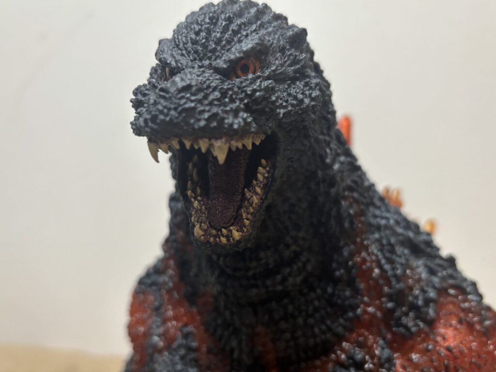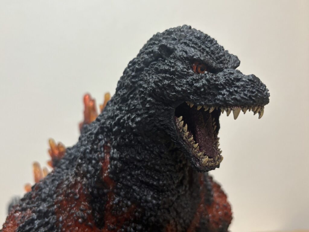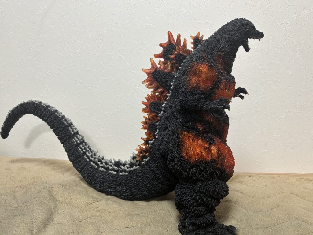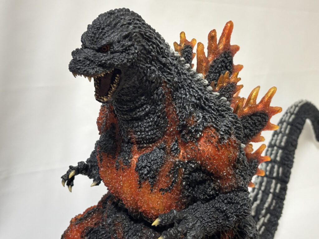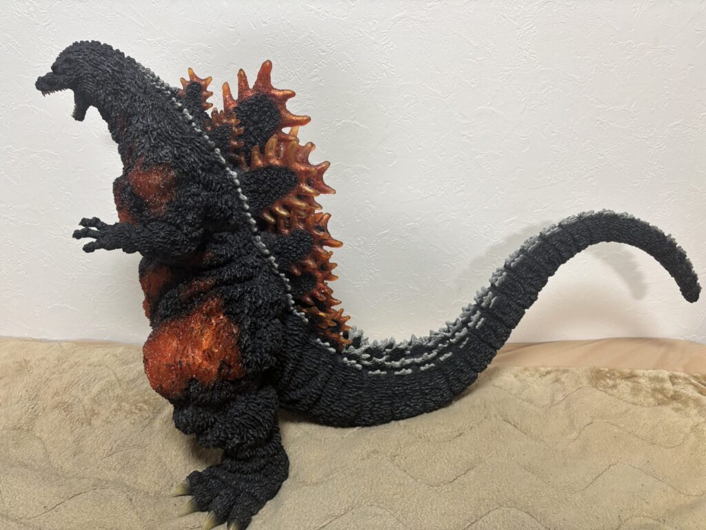 表皮のモールドが深く、本当の生き物みたいですごい質感です。購入当時同じような感想だった東宝30cmシリーズと比較してもレベルがさらに上です。