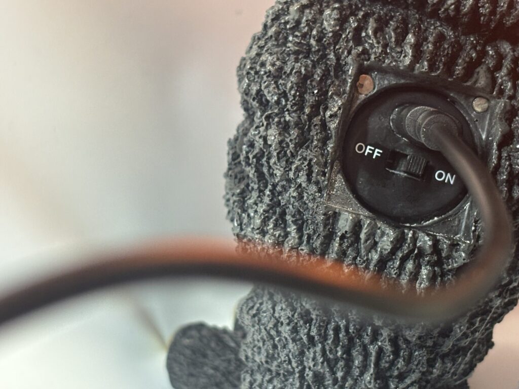 発光ギミックはこんな感じで、足にUSBケーブルを接続してスイッチを入れます。