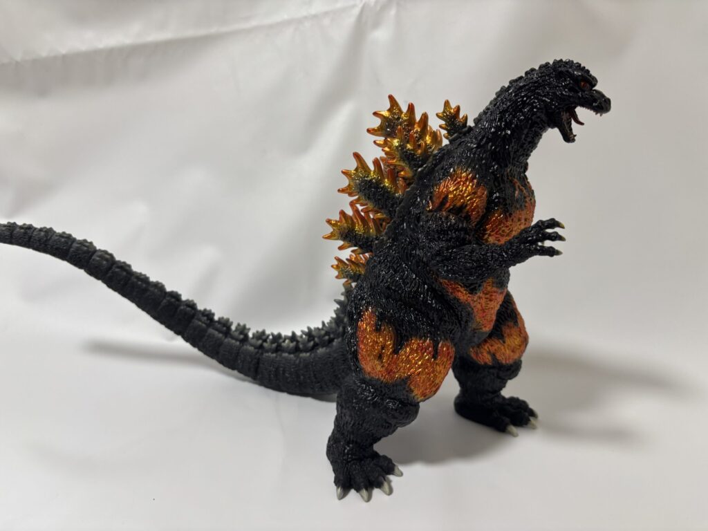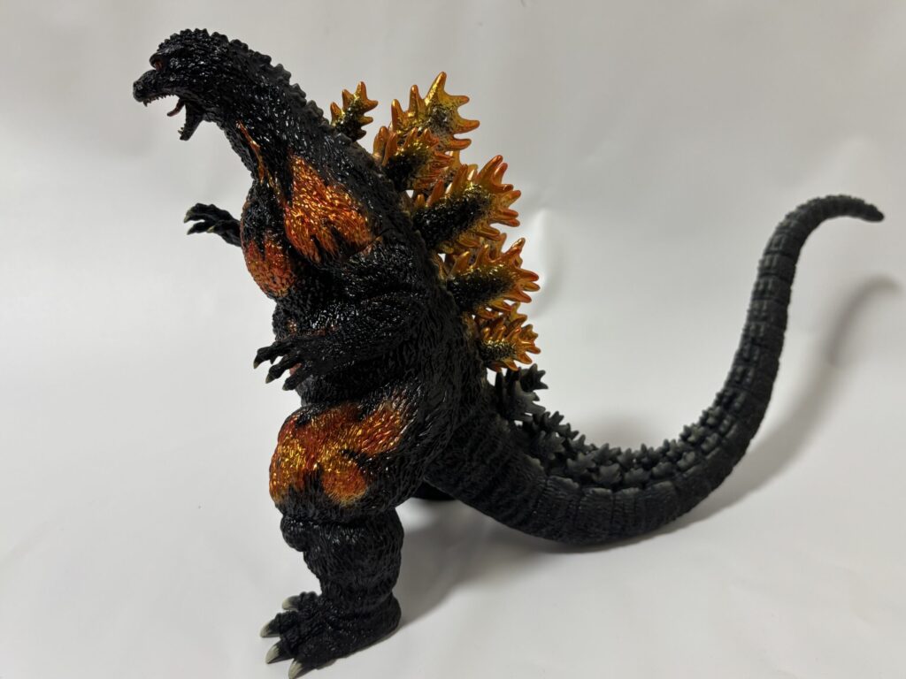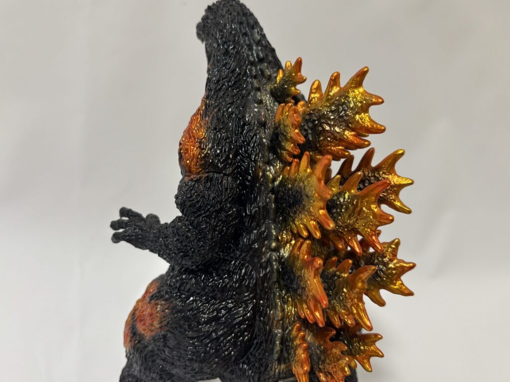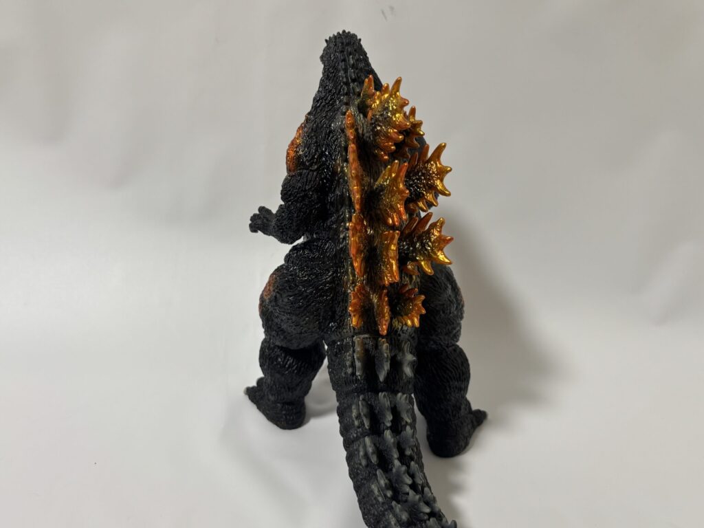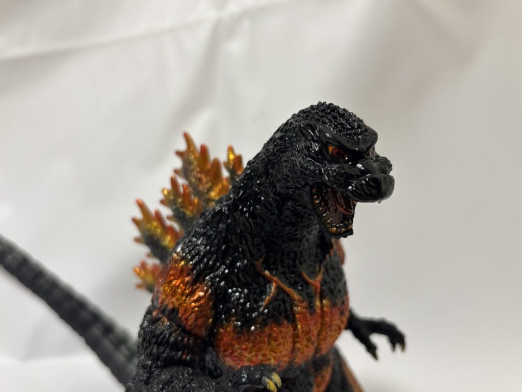 過去に東宝30cmシリーズで販売されたゴジラ(1995)香港上陸ver.を3Dスキャンしてダウンスケールしたものなので、造形は言うまでもなく素晴らしいです。造形は。