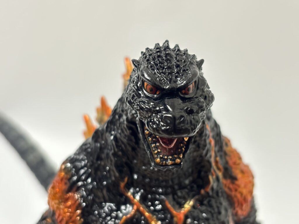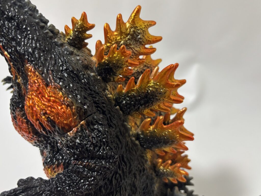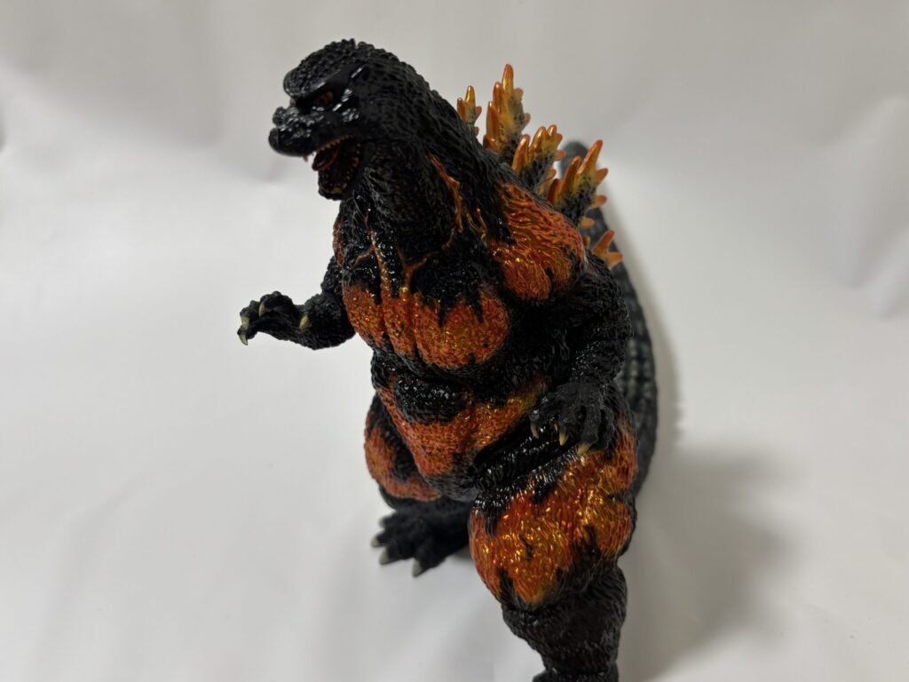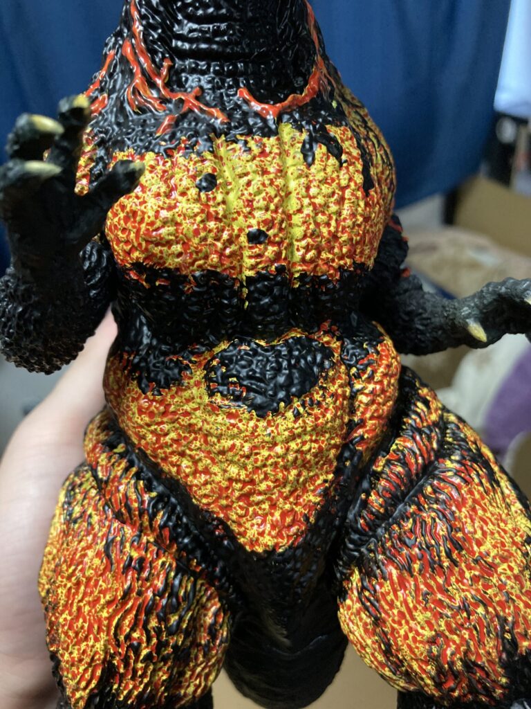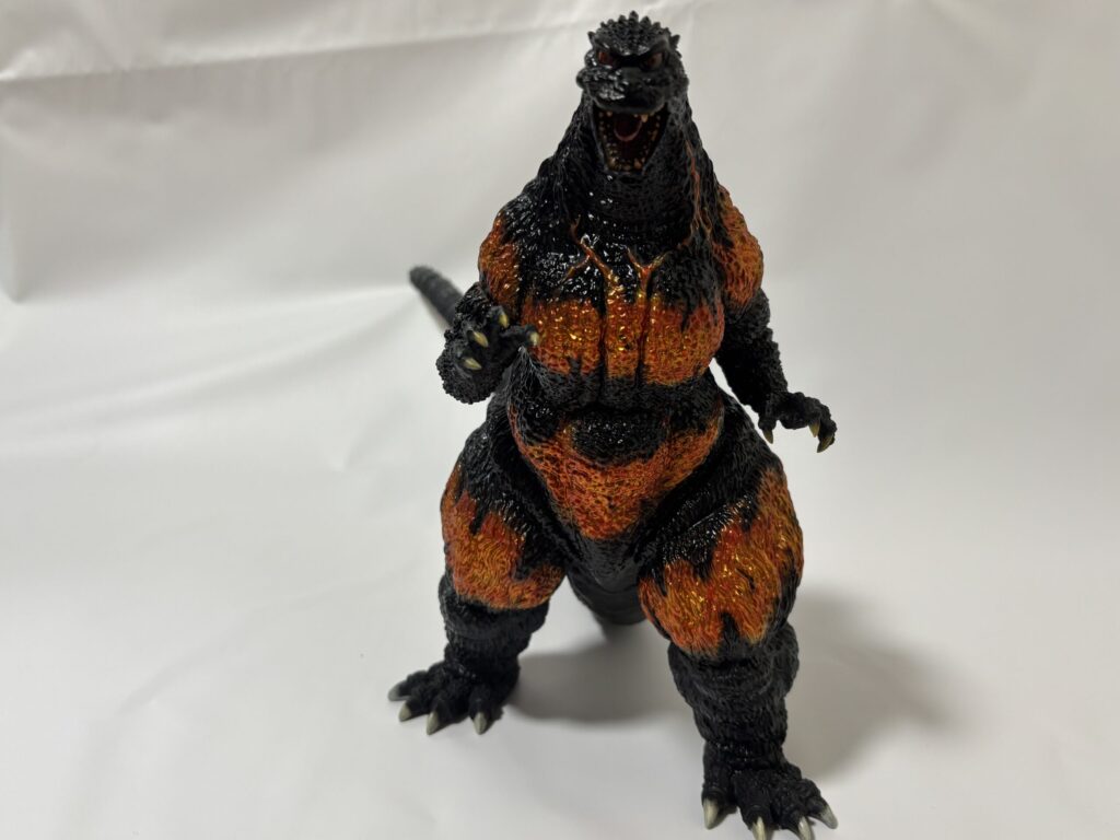 過去に東宝30cmシリーズで販売されたゴジラ(1995)香港上陸ver.を3Dスキャンしてダウンスケールしたものなので、造形は言うまでもなく素晴らしいです。造形は。