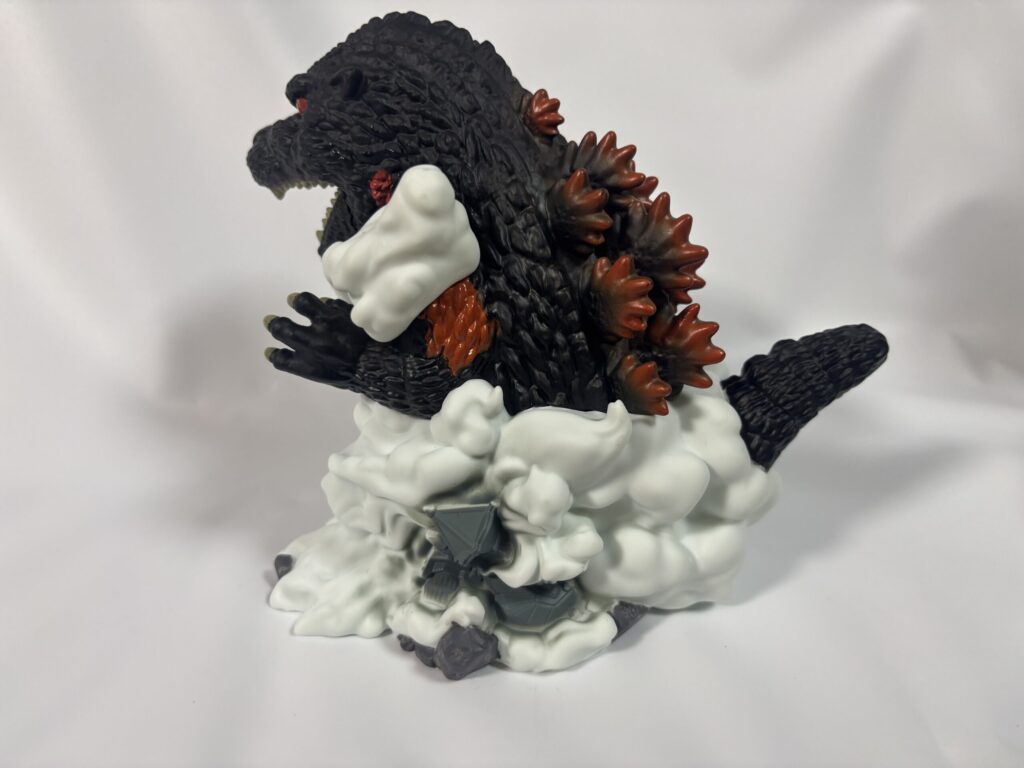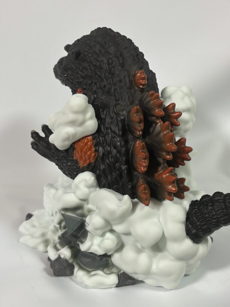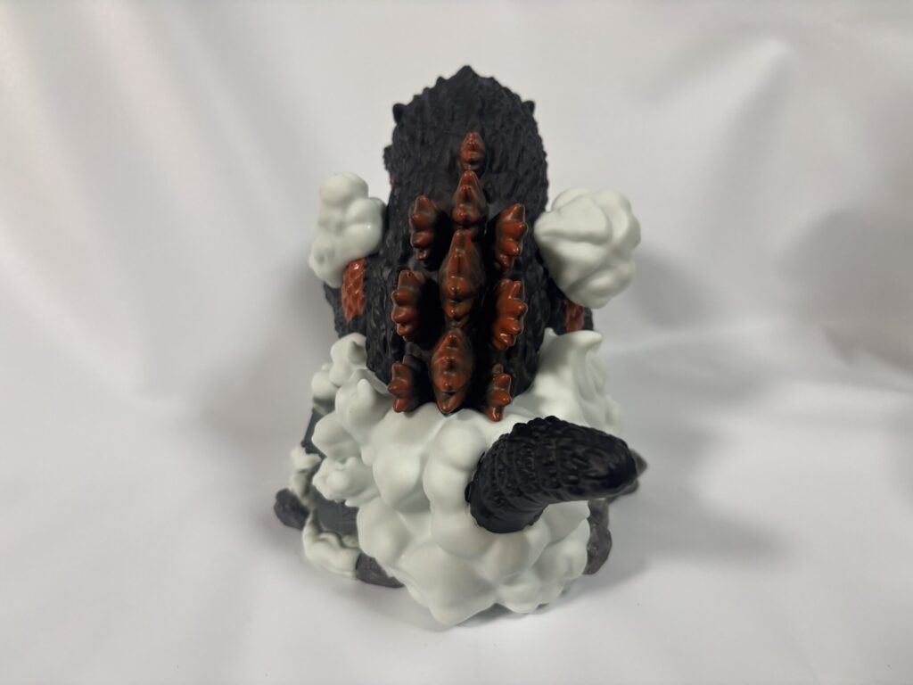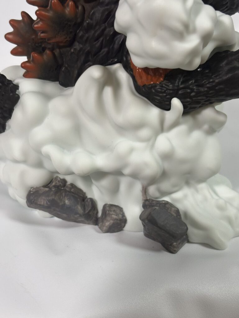 蒸気が豪快すぎて、多少瓦礫を塗り足してもまだ手抜き感を感じます。上半身は蒸気が少ないので、ゴジラの体からというより足下から蒸気が噴出している感じに見えます。足先くらい蒸気からはみ出しても良かったのではと。
