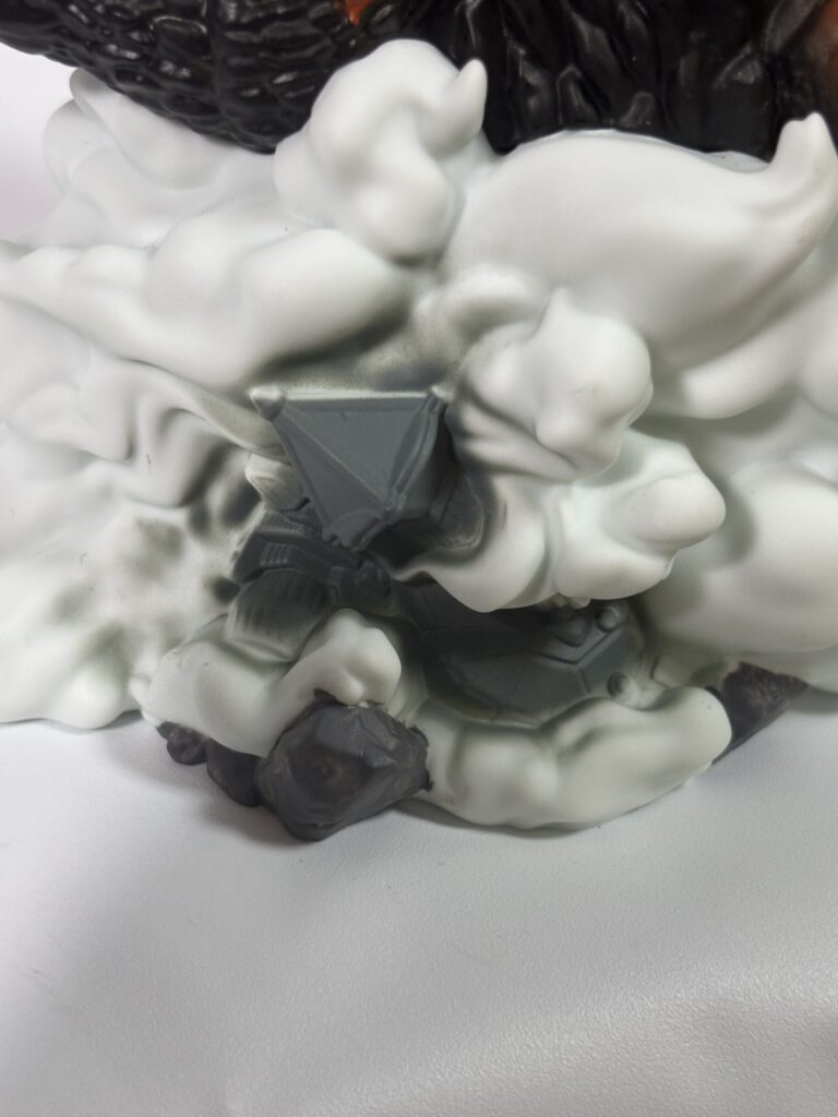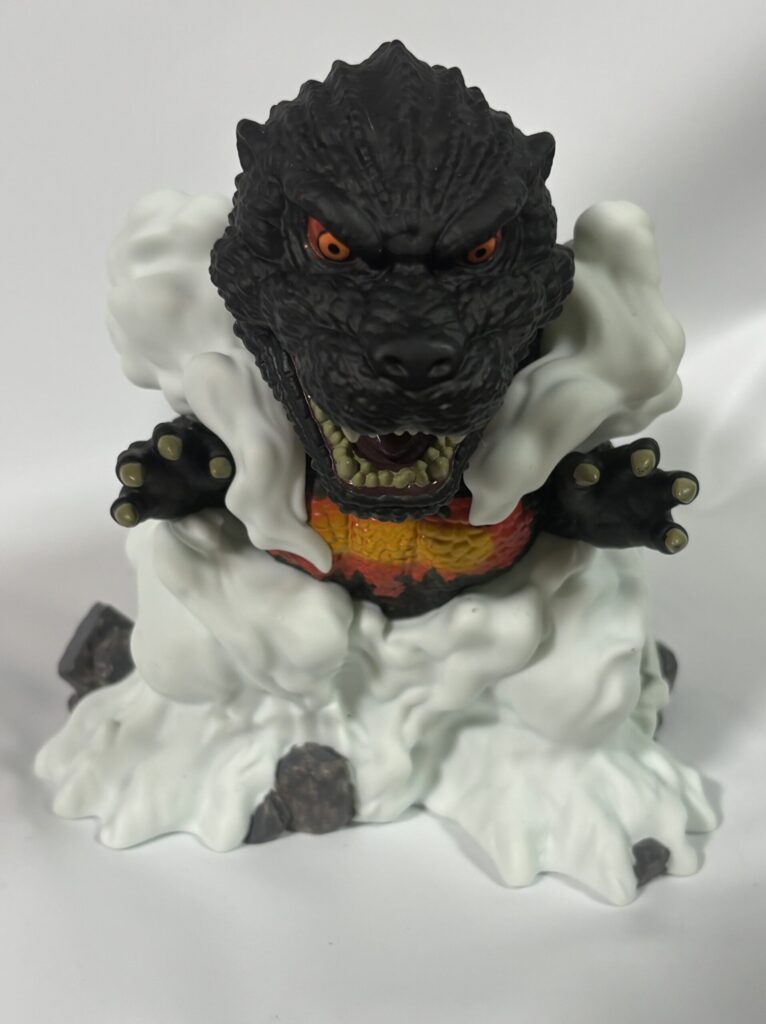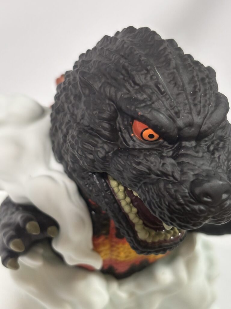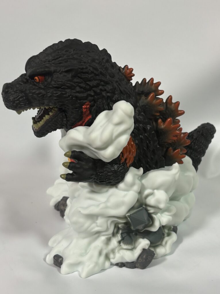 蒸気が豪快すぎて、多少瓦礫を塗り足してもまだ手抜き感を感じます。上半身は蒸気が少ないので、ゴジラの体からというより足下から蒸気が噴出している感じに見えます。足先くらい蒸気からはみ出しても良かったのではと。