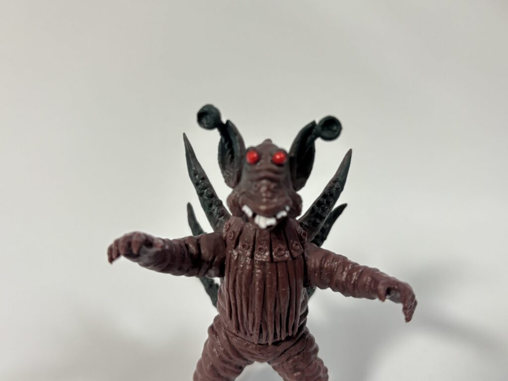 目がちょっと釣り目な感じですが、塗装の省略もなく、いい出来だと思います。他の怪獣の方がコストがかかってそうで、ボリュームは控えめです。