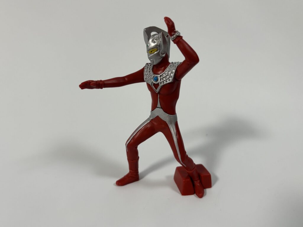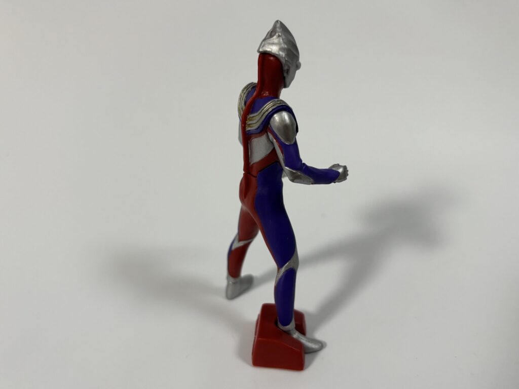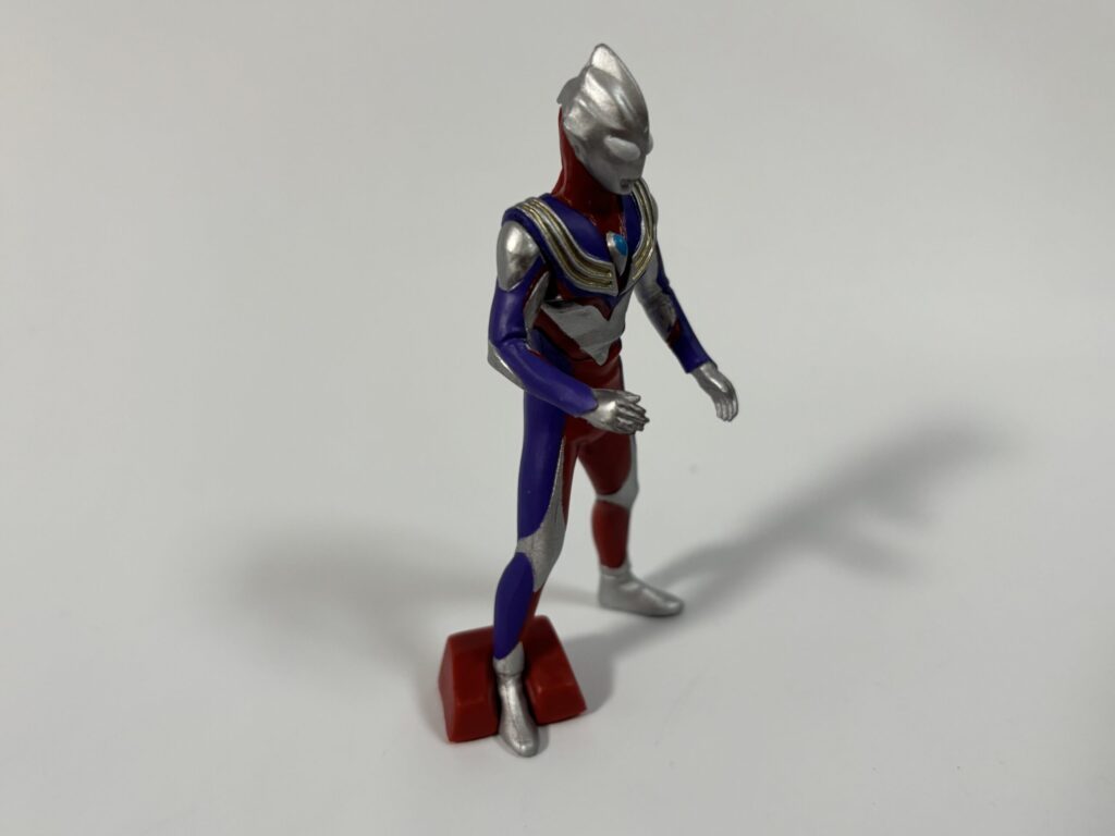ポーズに関してはファイティングポーズでもなく何とも言えない感じ。前述のとおりティガは最後に出ましたが、ガシャをのぞき込んだら3回目の時点でティガの青いカプセルが底のポケットにハマっていたので「これはもろたで」と思いながら回しました。